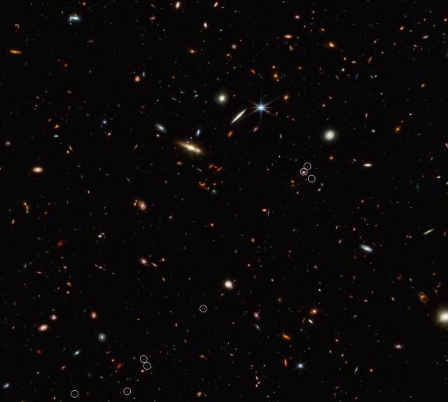 Astronomers using NASA’s James Webb Space Telescope have discovered a thread-like arrangement of 10 galaxies that existed just 830 million years after the big bang.Jessica Evans (NASA)