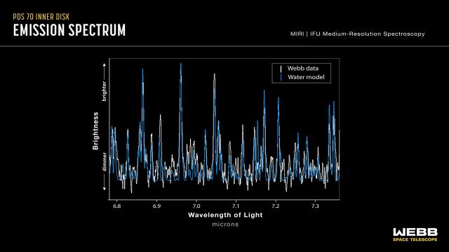 New measurements by NASA’s James Webb Space Telescope’s MIRI (Mid-Infrared Instrument) have detected water vapor in the system’s inner disk, at distances of less than 100 million miles (160 million kilometers) from the star – the region where rocky, …Jamie Adkins (NASA)