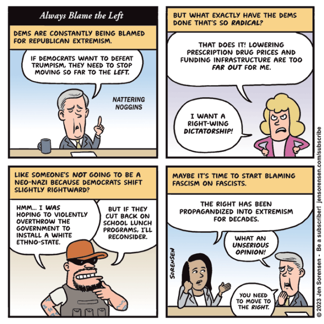 Neglected to post this cartoon from a couple weeks ago: Always blame the left!