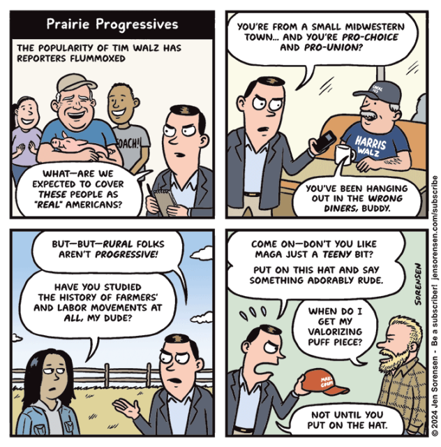 #uspol #USPolitics #cartoon #comic #TimWalz #media #journalism #rural