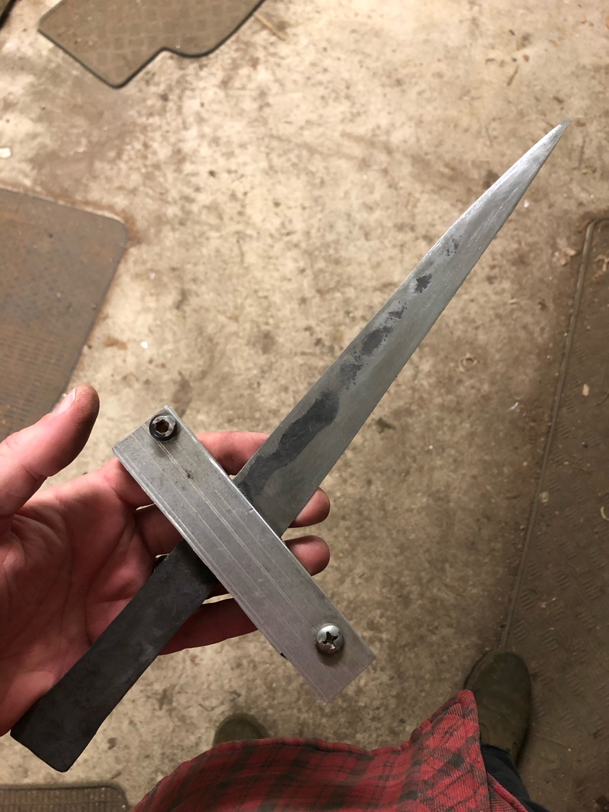 Progress on the carving knife Iβm making. The rough forging was done last weekend (might have been the one before) and today I ground and filed in bevels and improved the shape a bit.