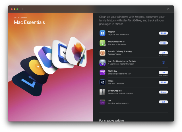 In the #macOS App Store in the "Mac Essentials" story, there is a #Mastodon client listed under "Indispensable apps and tools."