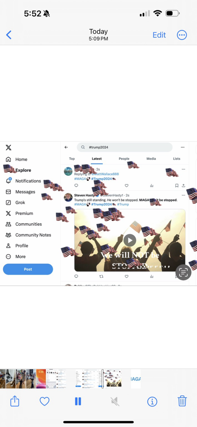 #Trump2024 appears with an American flag