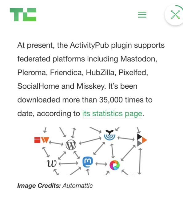 @pfefferle's #ActivityPub plugin got bought by #Automattic and the news is on the front page of TechCrunch.