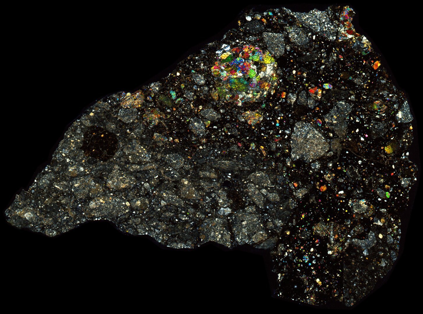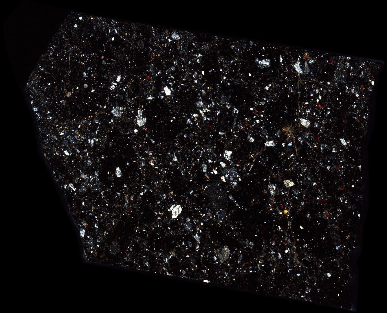 NWA 10203 Meteorite Thin Section - XPL HDR