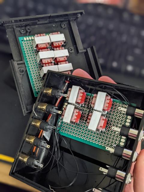 Anyone using a lot of USB-powered #audio equipment knows how annoying ground loops can be. With this I've got 5x stereo isolators in a relatively small box.