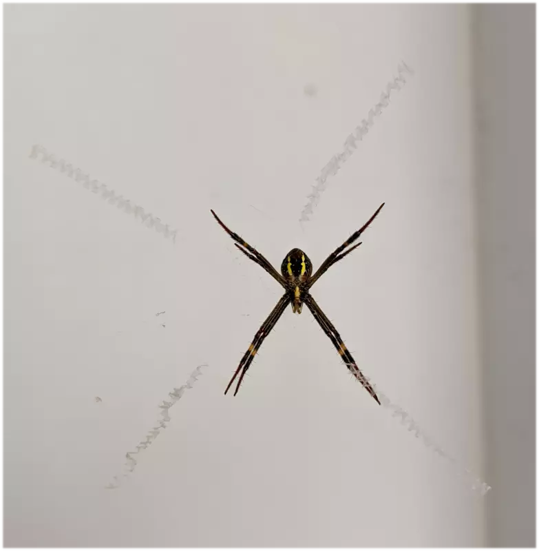 St Andrew's Cross Spiders are named for their bright web decorations - zig-zag ribbons of bluish-white silk that form a full or partial cross through the centre of the orb web.The Australian Museum