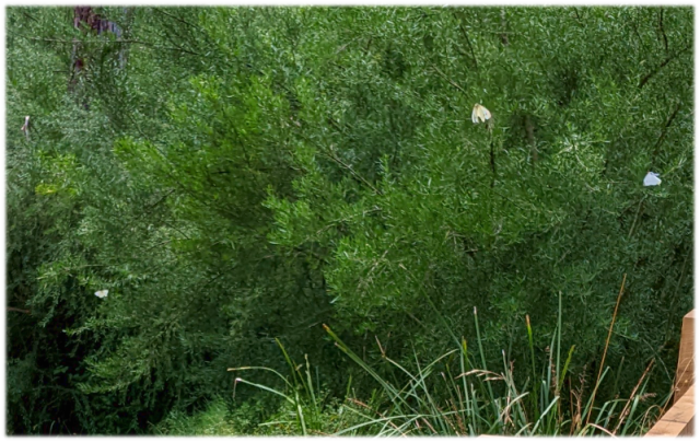 Today it's 25C and humid. The butterflies are out in force, and it struck me that it looks like a white Christmas! I wanted to get a picture of a good flurry of them, but they weren't cooperating when I snapped my photos! The one photo looks good and captures some of them.
