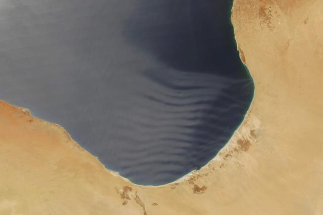 A thin layer of dust in the atmosphere helped expose gravity waves along the coast of Libya.go.nasa.gov