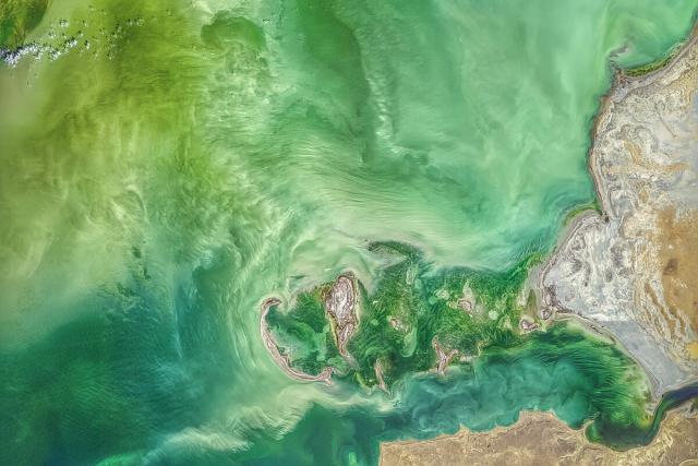 Milky blue swirls of phytoplankton are present in this view from @nasa’s Terra satellite on Aug. 3. go.nasa.gov/3OxCGIq