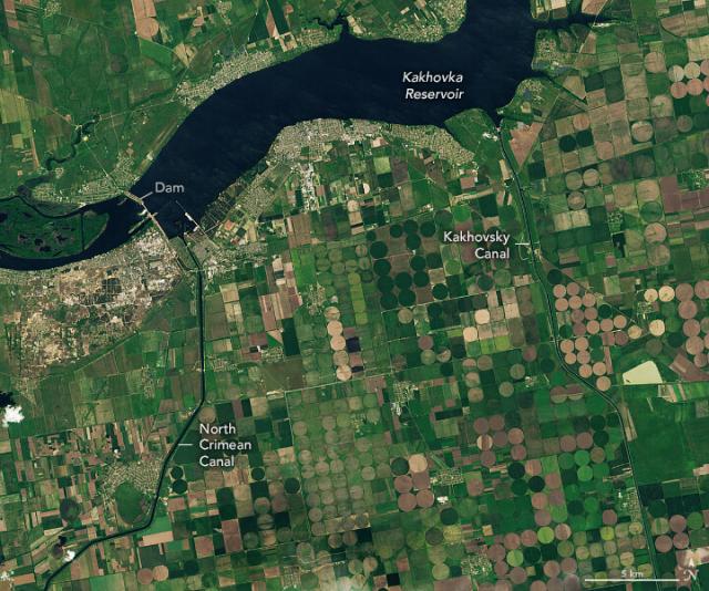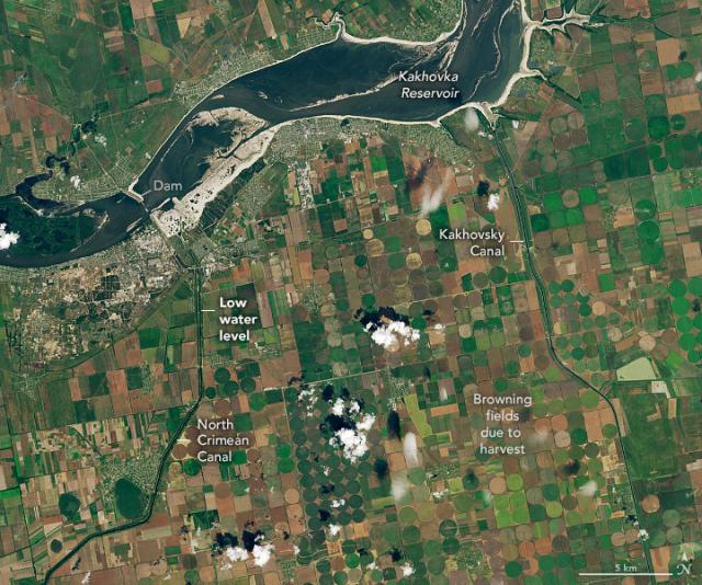 After the breach of Kakhovka Dam and the flood that ensued, farmers in the area are coping with depleted water supplies.go.nasa.gov