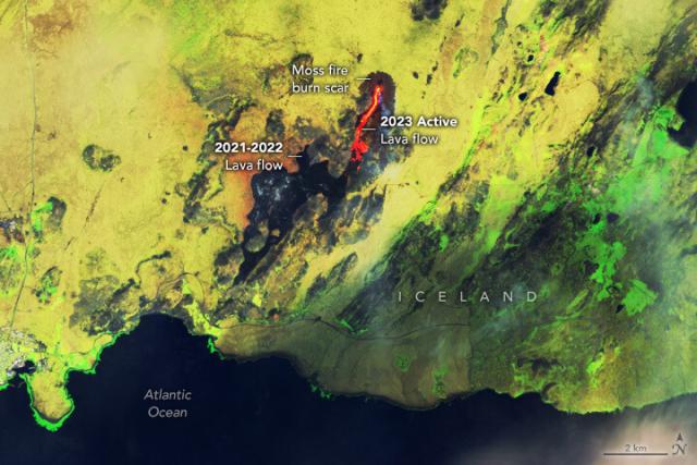 Lava is once again spilling from the volcano in southwest Iceland, only this time it is igniting moss fires.go.nasa.gov