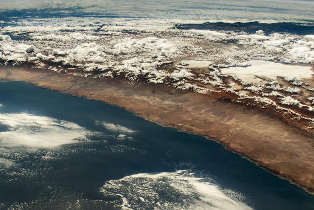The South American mountain range intercepts moisture, producing a distinct transition from rainforest to desert.go.nasa.gov