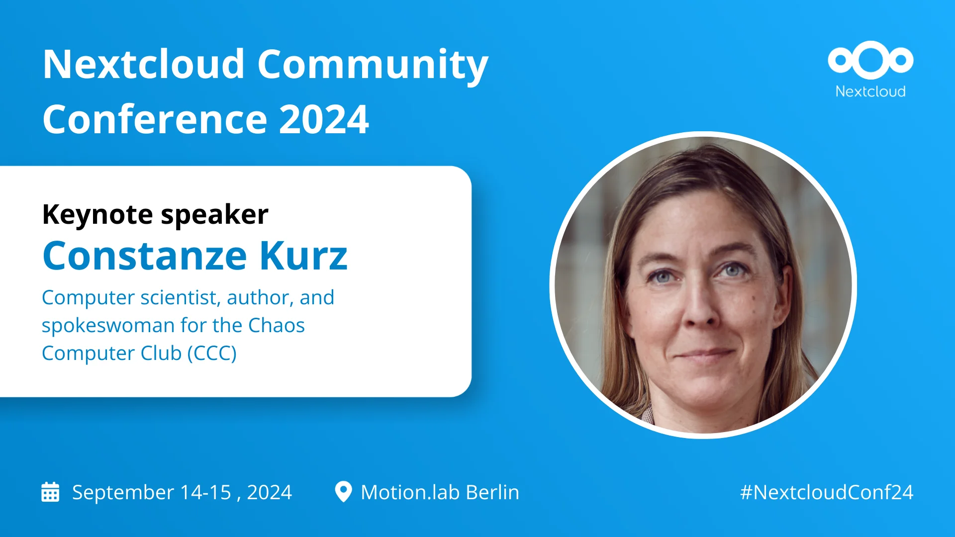 Announcing the first Nextcloud Community Conference keynote speaker - Constanze Kurz! Read the article to learn more.Mikhail Korotaev (Nextcloud)