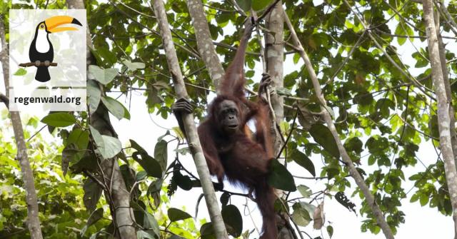 Auf Borneo holzt das Unternehmen Mayawana Persada Regenwald und Torfwald ab, in denen Orang-Utans leben.www.regenwald.org