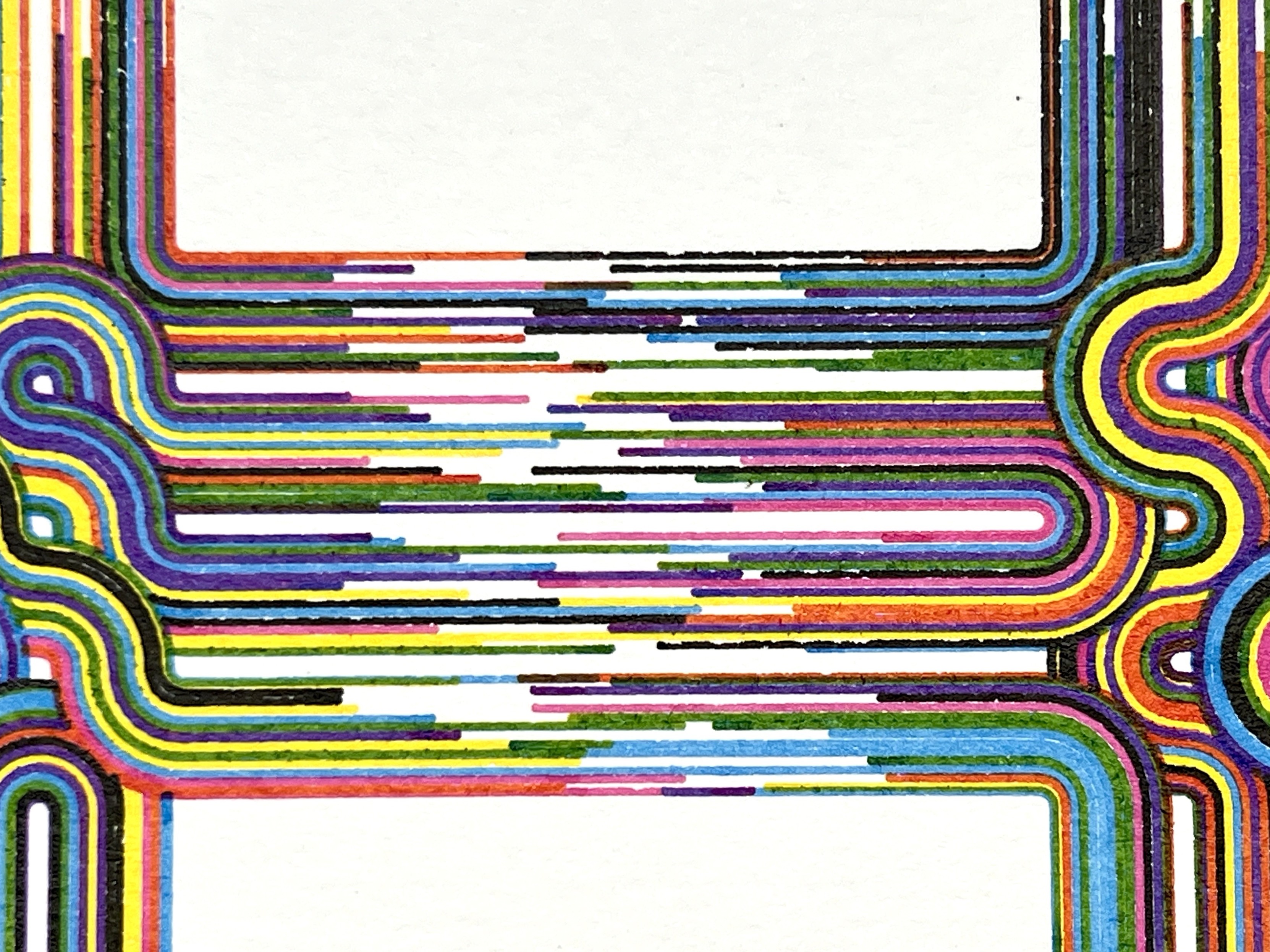 CMYK archival inks on 11x15 watercolor paper using a vintage HP 7585B pen plotter generated and controlled with Python.