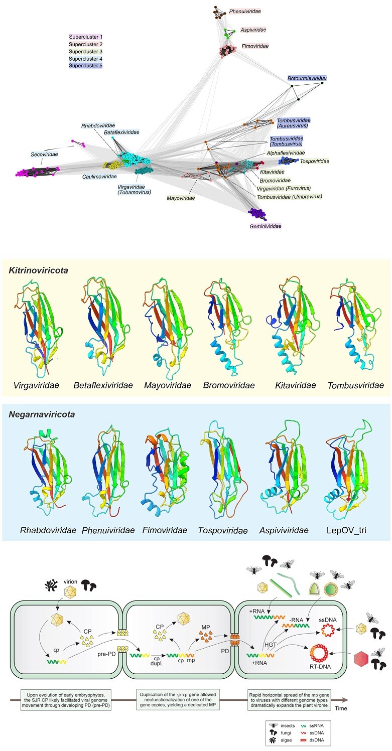 Movement proteins enable cell-to-cell transfer of #plant RNA & DNA viruses via #plasmodesmata. @Butkovic_A @mkrupovic &co show that 30K movement proteins originated from #virus #JellyRoll capsid proteins, emphasizing the key role of exaptation #PLOSBiology plos.io/3NxGsBX