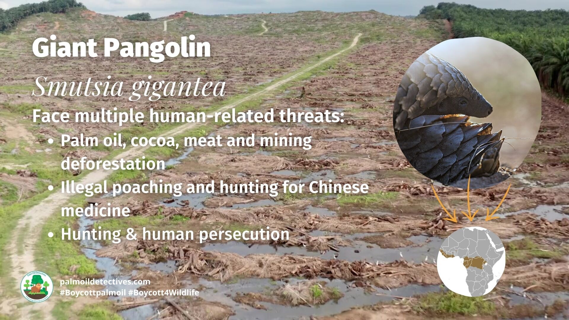 The Giant Pangolin is are the largest and heaviest of the pangolin species weighing up to 35 kilos. These majestic creature are cloaked in keratin armour and embark on nightly quests through CentraโฆPalm Oil Detectives