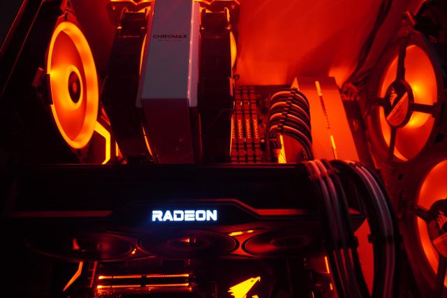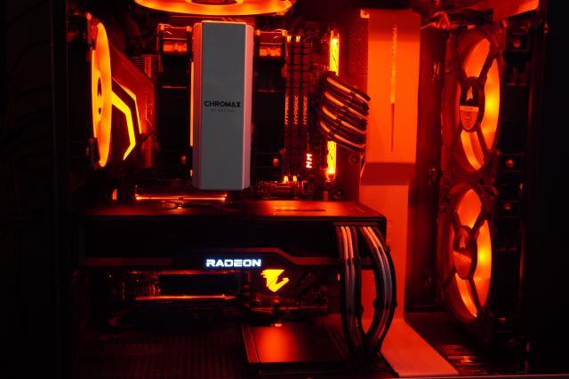 Newer pictures of my Linux Gaming rig! #AMD Radeon 6800XT Midnight Black Edition, X470 Aorus Gaming 7 Wifi with 3900X and 128GB DDR4-3600 with around 20tb of storage for games ๐