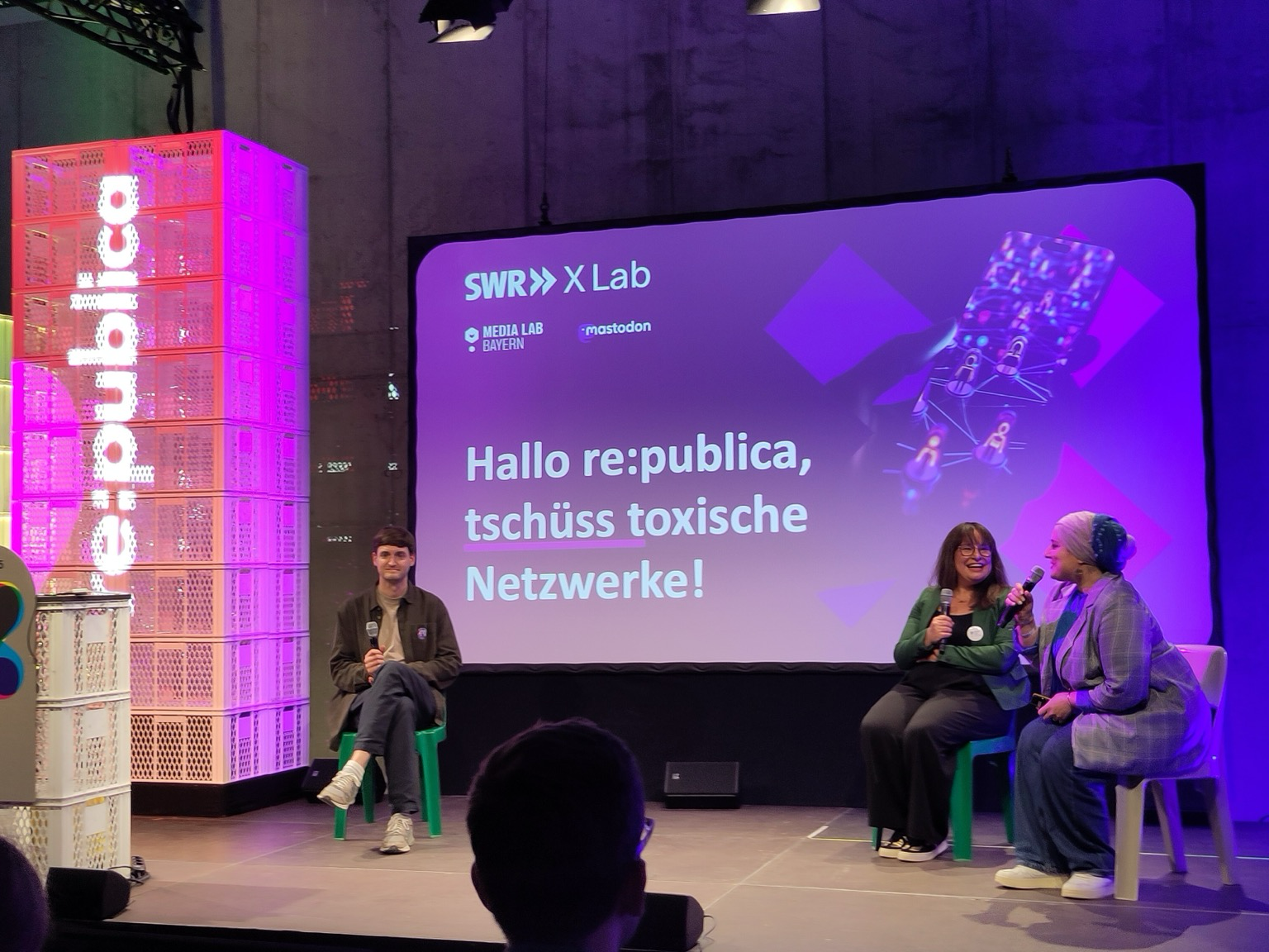 Und es wird Zeit, dass ich Mastodon lerne, wenn ich mit Pia Lexa und @mellifluousbox auf der #rp25 das spannende Fedivers-Fellowship „Reinvent Social Plattforms“ vorstelle, bei dem @infodesignerin @annaneifer @lxplm @M3phist0 @praxeology und Yasmina Al-Gannabi daran arbeiten, bestehende soziale Plattformen für den SWR und die ARD neu zu denken.