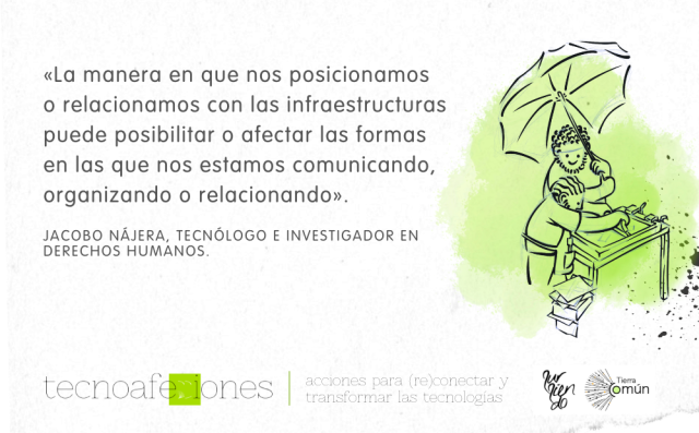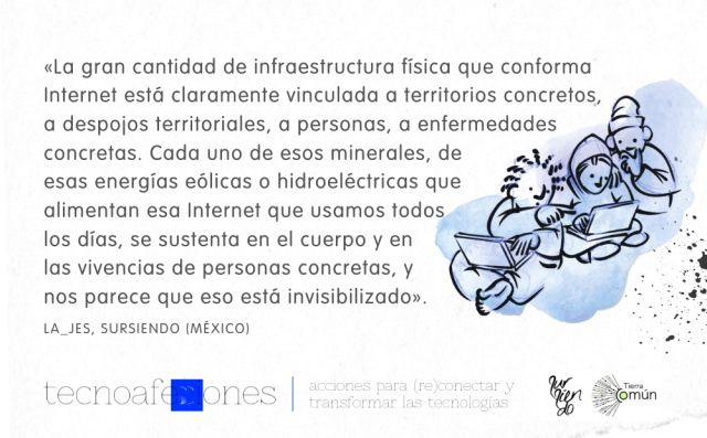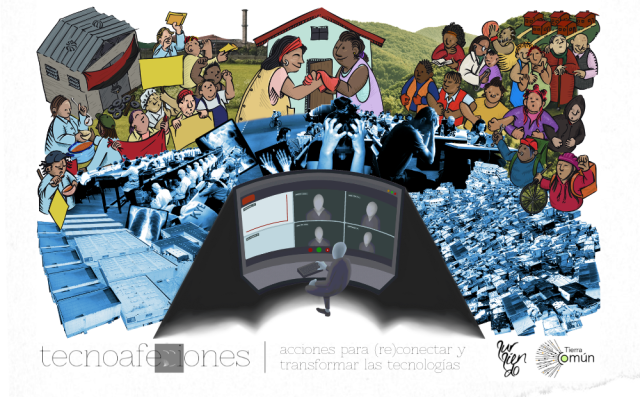 La campaña #tecnoafecciones, derivada del proyecto, se plantea como un recorrido por cada una de las dimensiones que hemos decidido abordar en el proceso de producción y consumo de tecnologías…Sursiendo