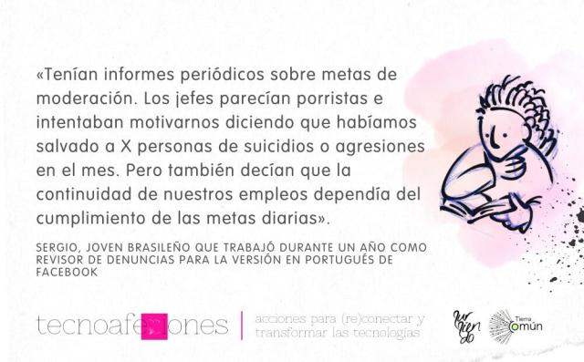 En general, es realizado personas subcontratadas que analizan durante 8 o 10 horas videos, fotos y publicaciones relacionadas con contenido ofensivo o violento.