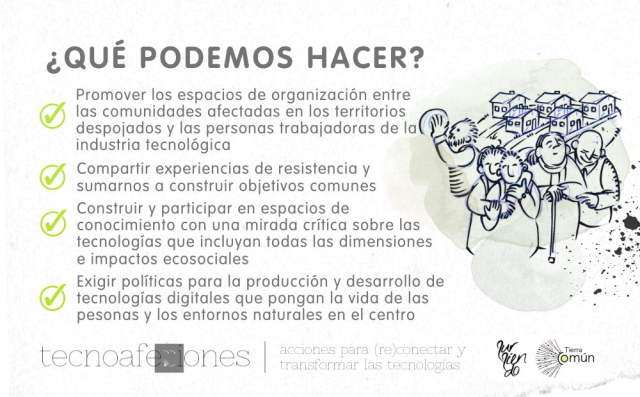 ✅ Promover los espacios de organización entre las comunidades afectadas en los territorios despojados y las personas trabajadoras de la industria tecnológica