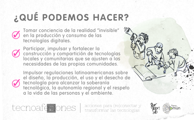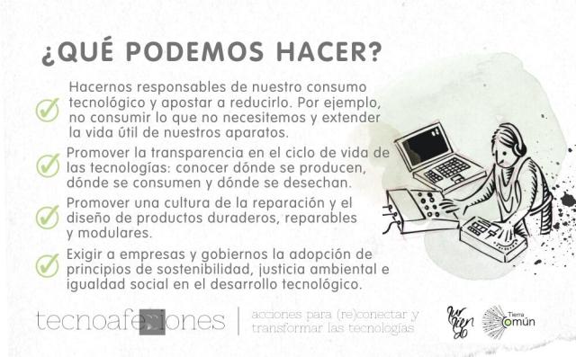 ✅ Co-responsabilizarnos de nuestro consumo tecnológico y apostar a reducirlo. Por ejemplo, podemos empezar por no consumir lo que no necesitemos.