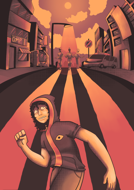 It was supposed to just Illustrate in B&W the first scene of the novel, but then I liked the composition, "I'll just add the solid colors", "I'll just shade it a bit.