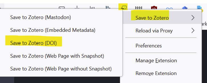1. Bc Mastodon is using standard HTML, Zotero is able to recognize any DOIs in your current timeline & import the related works into your Zotero library: